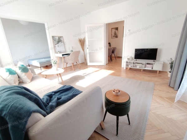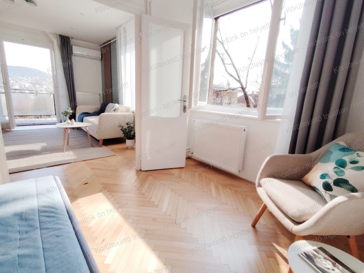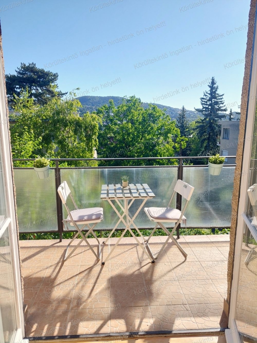 csendes, 1. emeleti, Törökvészre panorámás, 2 szobás, erkélyes, tégla építésű, felújított lakás szeparált tárolóval (4-5 m2) és udvari felszíni autóbeállóval eladó.
