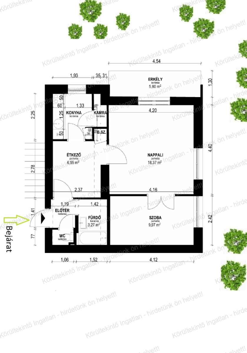 A lakás saját, önálló helyrajzi számmal és a ház telkén belül saját, névre szóló beállóval rendelkezik.